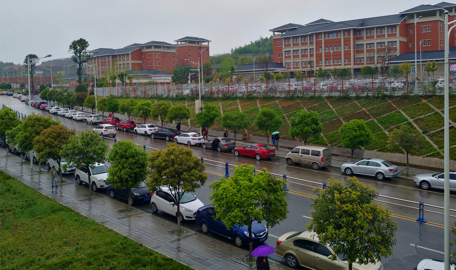 图为:考区外车辆停放有序交通顺畅